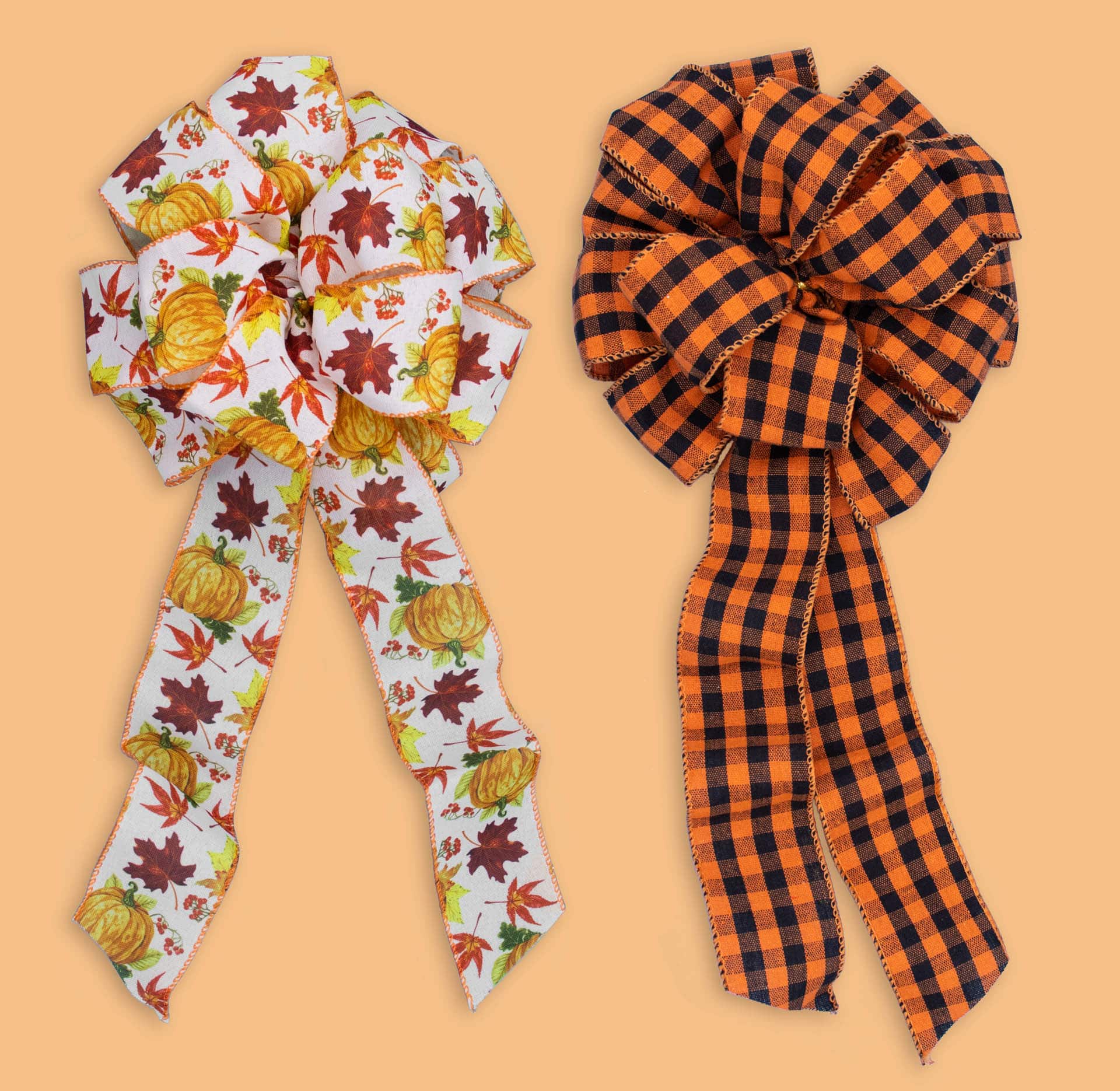 - Assortment includes 12 white bows w/ pumpkins and fall leaves, and 12 black/orange checkered bow