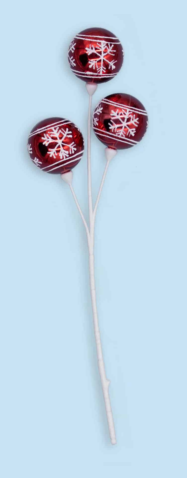 3 - 2" red balls w/ white snowflake print