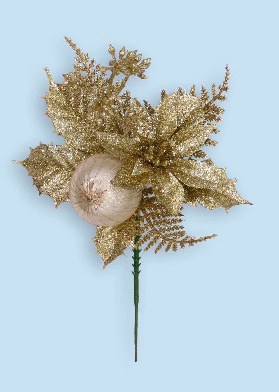 • Gold glitter pick wih ball