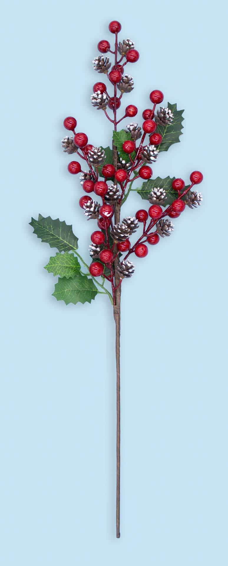 23" Red berry/frosted mini cone, holly
